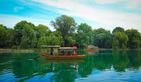 老龍灣搖櫓船可乘坐八名游客,沿老龍灣主水面環(huán)游一圈,時(shí)長半個(gè)小時(shí)。置身湖中,一邊聆聽船妹子講解老龍灣的前世今生,哼唱各種小調(diào);一邊隨著船身的搖晃欣賞兩岸的美景,置身于老龍灣的美景中宛若“人在畫中游”。
