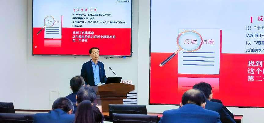 集團(tuán)黨委委員、副總經(jīng)理?xiàng)罡昏「笆÷糜卧O(shè)計(jì)院、齊魯產(chǎn)投公司宣講