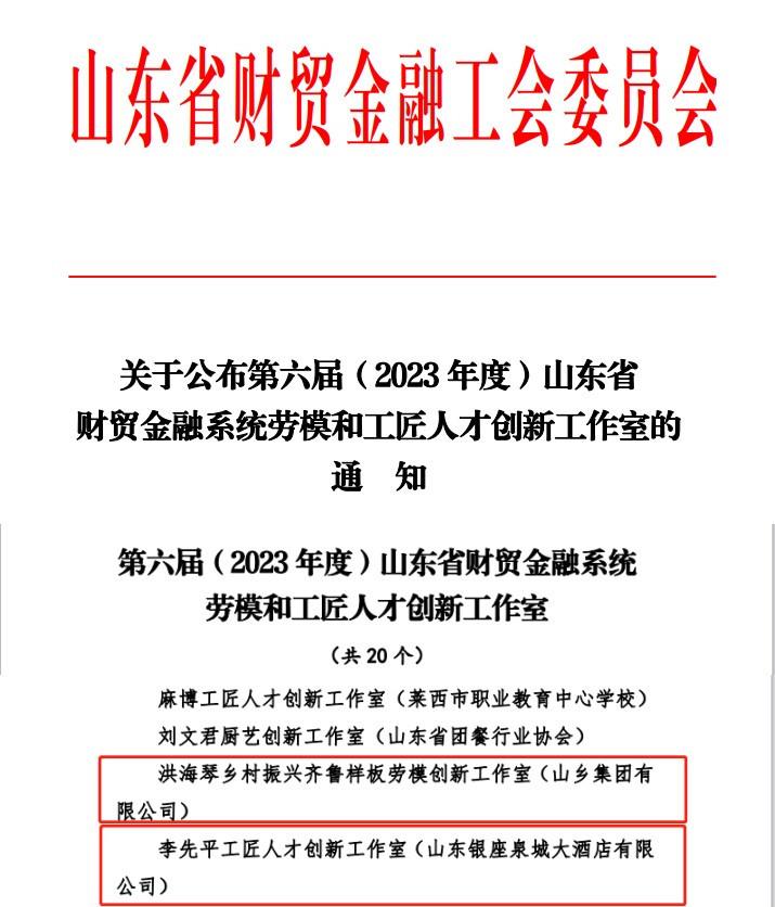 為進(jìn)一步發(fā)揮勞模和工匠人才在推進(jìn)創(chuàng)新發(fā)展中的示范帶動(dòng)作用,山東省財(cái)貿(mào)金融工會(huì)于近期組織評(píng)選“2023年度山東省財(cái)貿(mào)金融系統(tǒng)勞模和工匠人才創(chuàng)新工作室”。經(jīng)過層層遴選,由山東文旅集團(tuán)工會(huì)推薦的“洪海琴鄉(xiāng)村振興齊魯樣板勞模創(chuàng)新工作室”“李先平工匠人才創(chuàng)新工作室”獲評(píng)。截至目前,集團(tuán)連續(xù)三年共獲評(píng)5家勞模和工匠人才創(chuàng)新工作室,2021年集團(tuán)獲評(píng)“張俊民工匠人才創(chuàng)新工作室”“于德水工匠人才創(chuàng)新工作室”,2022年集團(tuán)獲評(píng)“曲磊紅云文旅科技勞模創(chuàng)新工作室”。