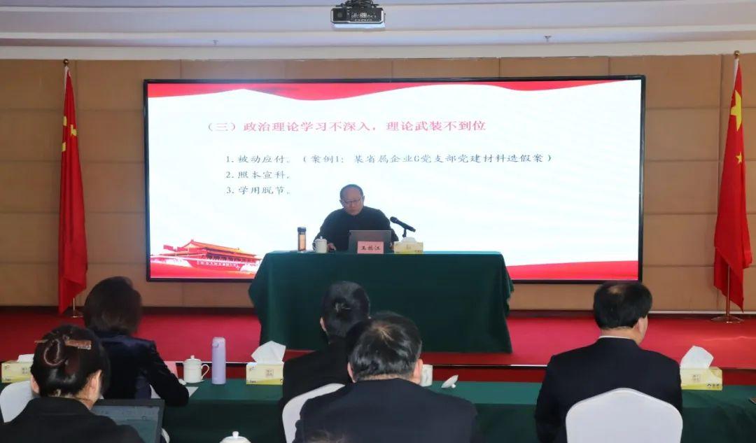 王振江同志通報(bào)了近年來(lái)國(guó)資國(guó)企系統(tǒng)和集團(tuán)黨風(fēng)廉政建設(shè)和反腐敗工作基本情況,分析了新時(shí)代黨風(fēng)廉政建設(shè)面臨的形勢(shì)任務(wù)和要求,并結(jié)合企業(yè)實(shí)際,以“扣好廉潔從業(yè)第一??圩印睘橹黝},運(yùn)用大量典型事例,深刻剖析了國(guó)有企業(yè)年輕干部違紀(jì)違法案件特征及成因,從組織和個(gè)人兩個(gè)層面,對(duì)加強(qiáng)年輕干部教育監(jiān)督管理提出了七個(gè)方面具體要求,引導(dǎo)年輕干部堅(jiān)定理想信念,正確對(duì)待權(quán)力,時(shí)刻自重自省,守牢廉潔從業(yè)底線,能干事、想干事、干成事、不出事。