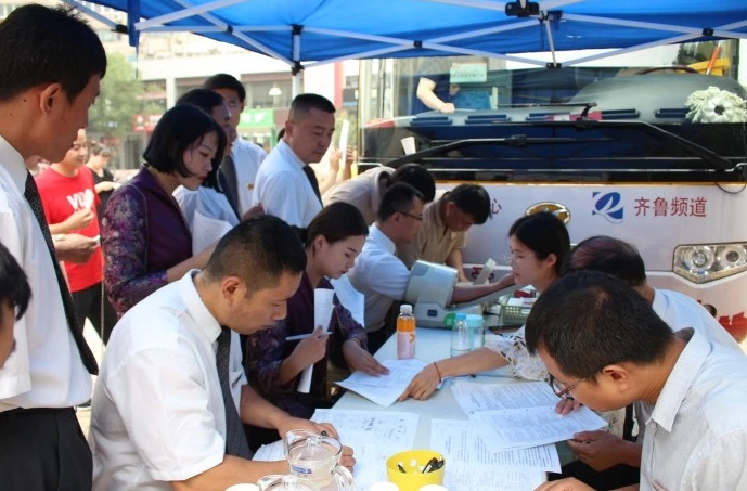 7月11日清晨,在銀座商城店正門廣場,來自銀座集團駐濟各黨支部的各級干部職工早早地在采血現場排起了“愛心傳遞”的長隊。