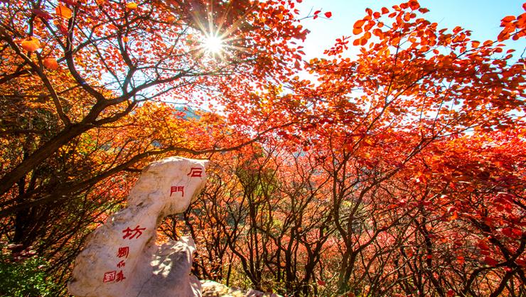 臨朐石門坊景區(qū)位于山東省臨朐縣城西,古以"晚照"聞名,現以紅葉著稱,為國內五大紅葉景觀之一,齊魯紅葉之冠。初夏葉茂花盈,每至重陽,漫山紅遍,如彩錦覆蓋大地,似紅云縹緲山間,丹青朱崖,誘得人們爭相觀往。