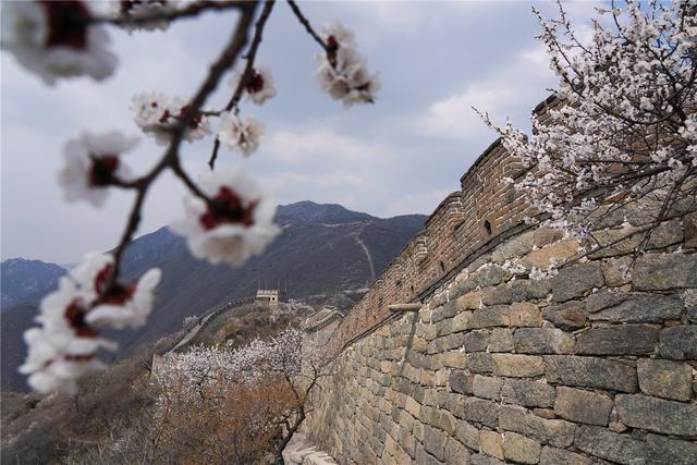 4月10日拍攝的北京慕田峪長城風(fēng)光。近日,隨著氣溫逐步回升,北京慕田峪長城山花爛漫,春意漸濃。新華社記者 鞠煥宗 攝