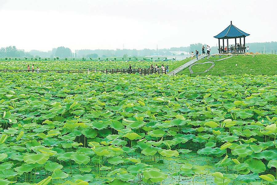 日前,游客在淮北市濉溪縣百善鎮(zhèn)柳江口文化園碧綠荷塘景觀帶中賞荷游玩,享受夏日清涼。通訊員 周方玲/攝