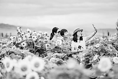 ④游客在天山花海景區(qū)賞花拍照。陶維明攝/光明圖片