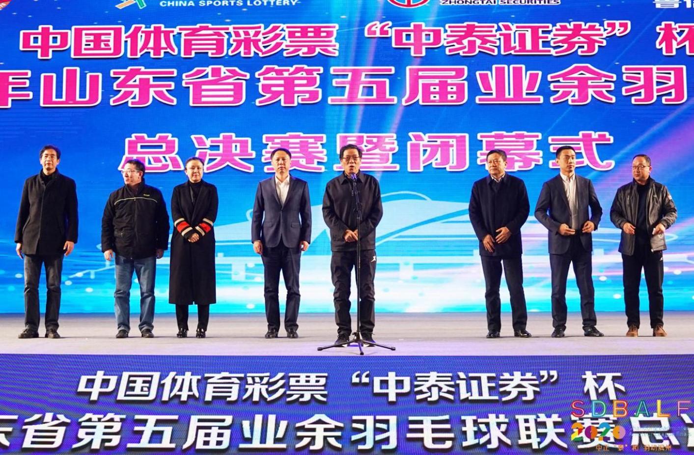 1月3日上午,由山東省羽毛球運(yùn)動(dòng)協(xié)會(huì)、濱州市體育局主辦,中泰證券股份有限公司冠名,山東省國欣文化旅游發(fā)展集團(tuán)(簡稱“國欣文旅”)旗下山東魯信康惠體育股份有限公司(簡稱“康惠體育”)承辦的2020年山東省第五屆業(yè)余羽毛球聯(lián)賽在濱州奧體中心順利閉幕。山東省體育局黨組書記、局長李政,國欣文旅黨委副書記、總經(jīng)理丁藝,等人出席閉幕式,并為獲獎(jiǎng)團(tuán)隊(duì)頒獎(jiǎng)。