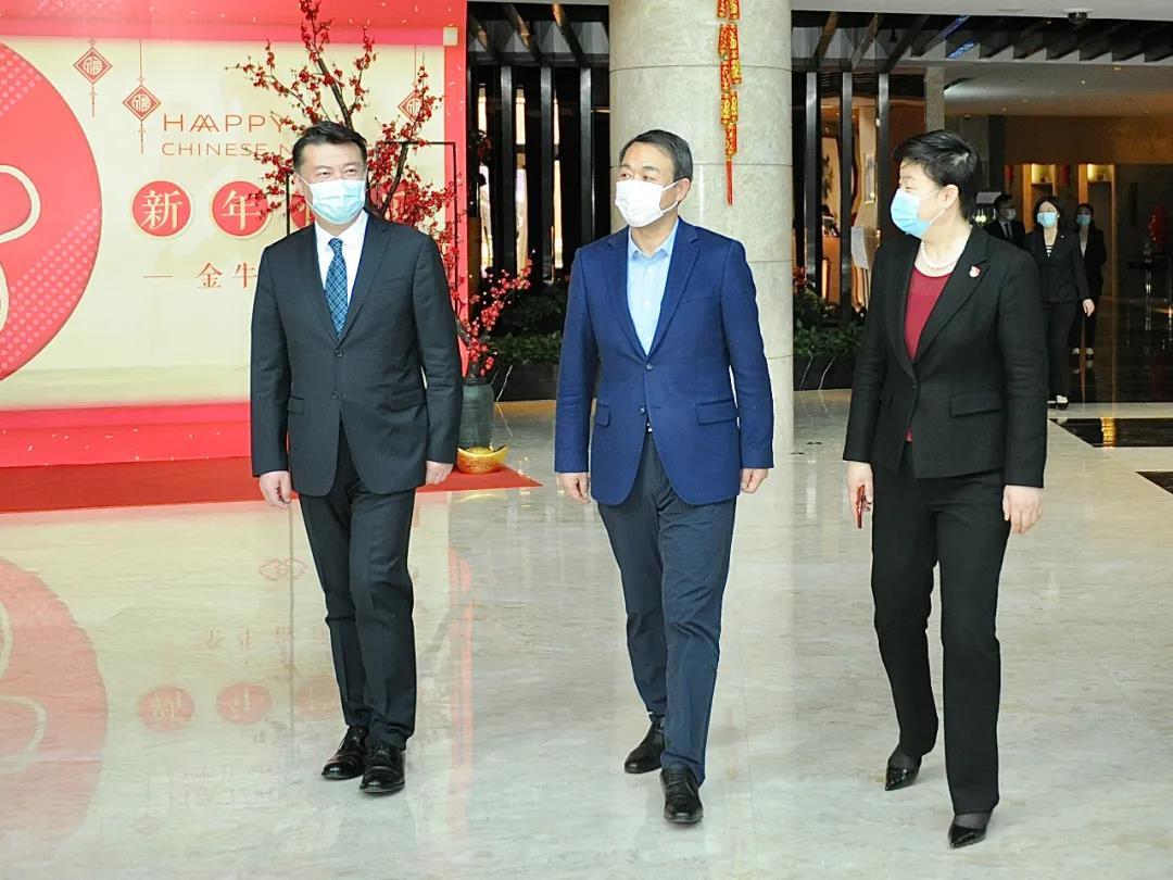 2月11日(農(nóng)歷大年三十)上午,魯商集團(tuán)黨委書記、董事長兼國欣文旅黨委書記、董事長高洪雷,來到濟(jì)南索菲特銀座大飯店看望慰問堅(jiān)守在工作崗位的一線干部職工,代表集團(tuán)向廣大干部職工致以節(jié)日問候和新春祝福,同時(shí)實(shí)地調(diào)研春節(jié)期間民生商品市場供應(yīng)、便民消費(fèi)服務(wù)和疫情防控措施落實(shí)情況。國欣文旅首席客戶官,山東文旅酒店集團(tuán)黨委書記、董事長李浩陪同。