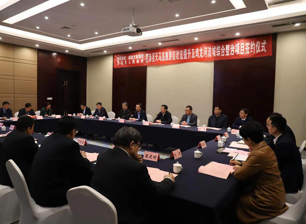 在高洪雷、侯曉濱等領導的共同見證下,山東文旅景區(qū)投資集團、魯商產(chǎn)業(yè)投資公司、莒南縣政府、莒南縣財金投資集團四方簽約天馬島旅游區(qū)項目;魯商國坤(山東)土地發(fā)展有限公司、莒南縣政府雙方簽約莒南縣雞龍河流域綜合整治項目。項目簽約后,莒南縣將分步提升天馬島旅游區(qū),并通過建設水田示范園、生態(tài)河道、濕地公園、美麗鄉(xiāng)村建設等將雞龍河領域塑造成城市濱水空間。
