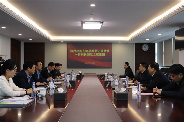 4月22日上午,魯商集團(tuán)黨委書(shū)記、董事長(zhǎng)兼山東省國(guó)欣文化旅游發(fā)展集團(tuán)有限公司(簡(jiǎn)稱“國(guó)欣文旅”)黨委書(shū)記、董事長(zhǎng)高洪雷與到訪的德州市齊河縣委書(shū)記孫修煒一行座談交流。國(guó)欣文旅黨委副書(shū)記、總經(jīng)理丁藝參加。