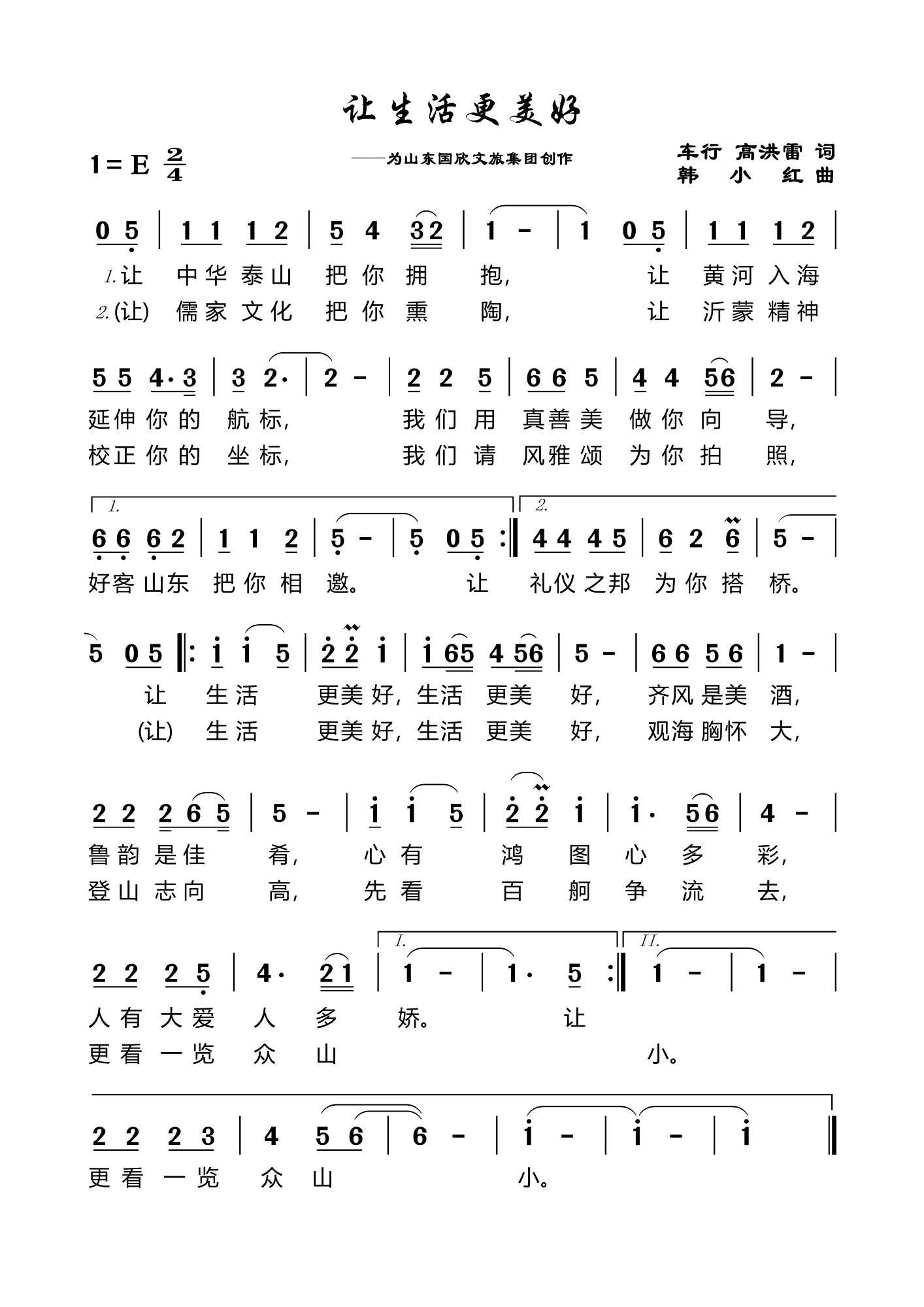 《讓生活更美好》是由國欣文旅攜手一線藝術(shù)創(chuàng)作團隊共同打造的一首悅耳動聽的抒情歌曲,由空軍政治部文工團創(chuàng)作室主任、中國音樂文學學會副主席車行,魯商集團黨委書記、董事長兼國欣文旅黨委書記、董事長高洪雷作詞,青年作曲家韓小紅作曲。