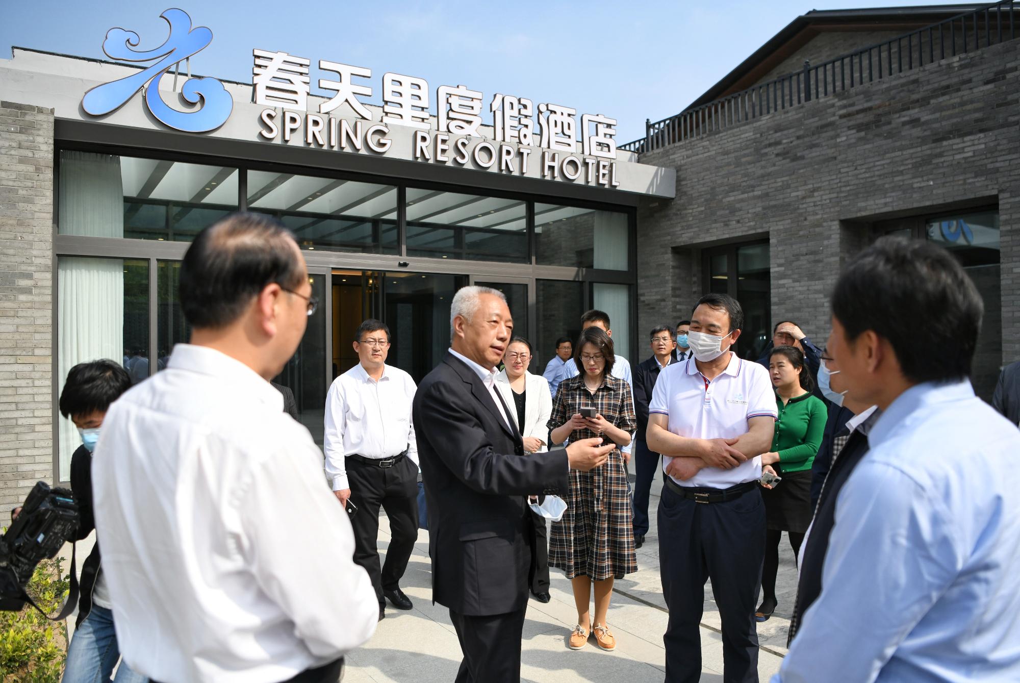 5月11日,中國科協(xié)副主席、書記處書記孟慶海帶隊(duì)到泰山九女峰鄉(xiāng)村振興項(xiàng)目考察。副省長凌文陪同調(diào)研。
