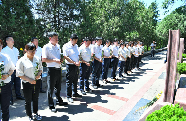 在濟南革命烈士陵園,大家挺身肅立,面向王盡美烈士墓碑鞠躬行禮,并敬獻鮮花,表達對革命先烈的追思與敬意。