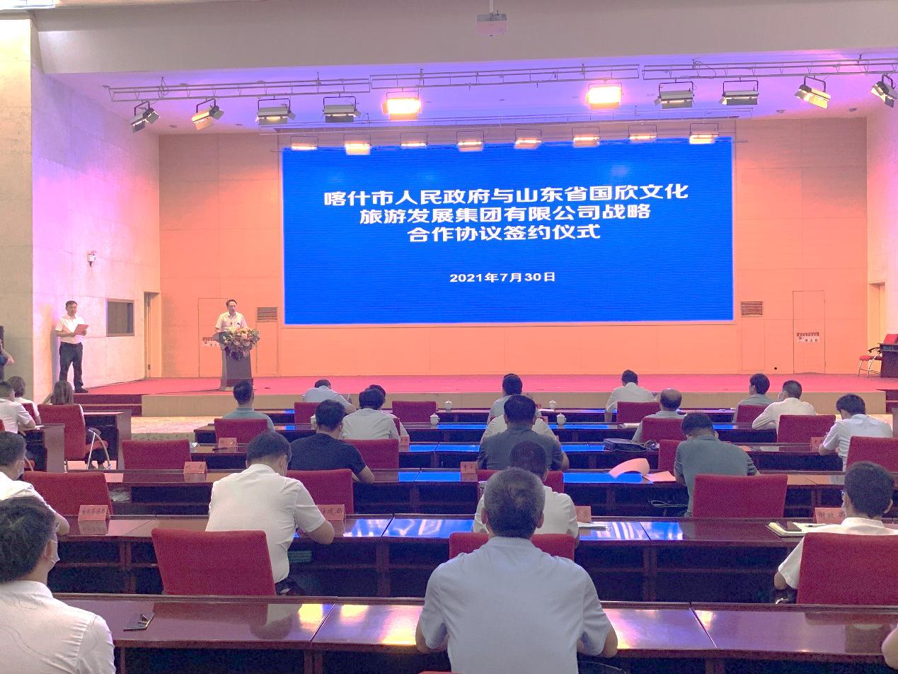 山東省援疆工作指揮部黨委書記、總指揮,喀什地委副書記張成偉,國欣文旅黨委副書記、總經(jīng)理丁藝,喀什地委委員、市委書記文福來,喀什市委副書記、市長亞生江·亞合甫出席簽約儀式。