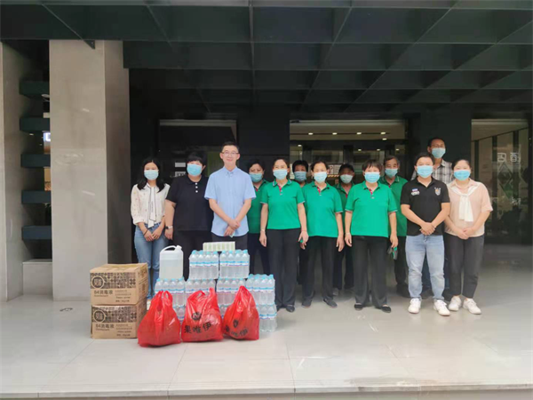 在送清涼活動(dòng)中,省旅游設(shè)計(jì)院領(lǐng)導(dǎo)帶著絲絲清涼和滴滴關(guān)愛(ài)為園區(qū)保潔與安保人員送去西瓜、礦泉水等消暑物品,感謝他們?yōu)槭÷糜卧O(shè)計(jì)院營(yíng)造出安全、衛(wèi)生、整潔的辦公環(huán)境。同時(shí),由于近期部分地區(qū)出現(xiàn)疫情反彈趨勢(shì),防疫物品必不可少,省旅游設(shè)計(jì)院為園區(qū)安全管理部門(mén)帶去酒精、消毒液等防疫物品。