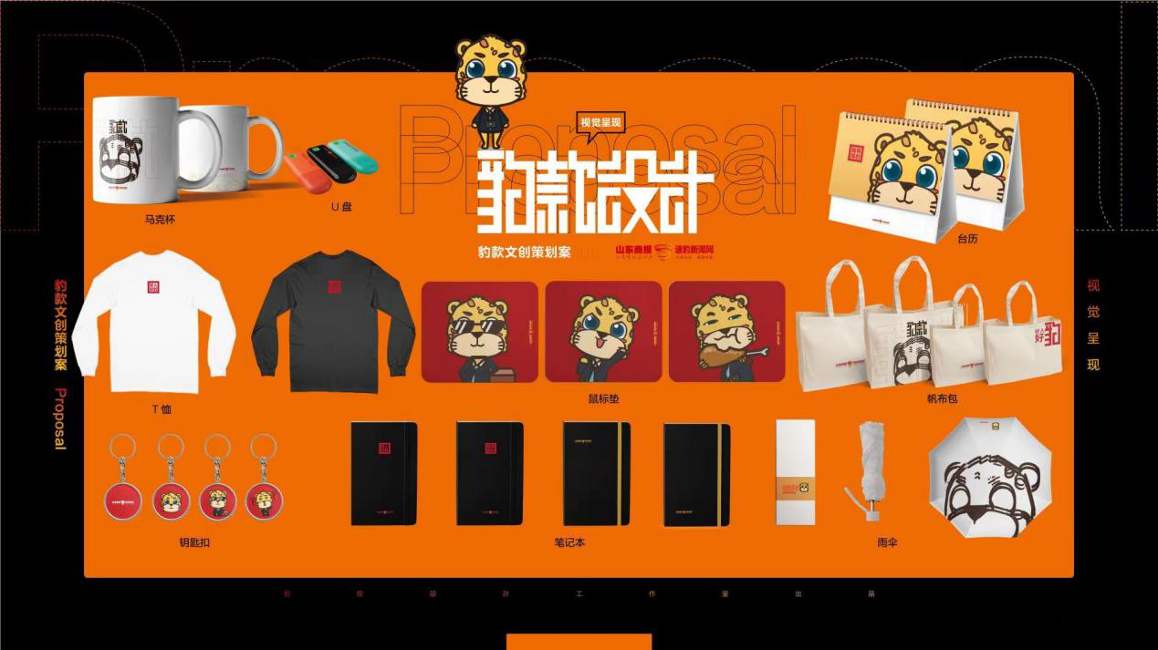 “豹款文創(chuàng)產品”是以山東商報·速豹新聞網為依托開發(fā)的系列文創(chuàng)產品。產品將擅長奔跑、動作靈活的豹子萌化成卡通IP形象,通過“豹”“報”諧音,用黑色西裝和相機等元素展現(xiàn)了新聞工作者的工作狀態(tài)。