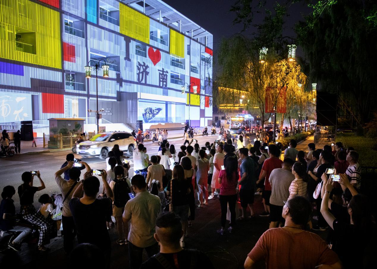 光影展現(xiàn)場(chǎng)打破傳統(tǒng)燈光對(duì)建筑、水景表現(xiàn)的局限,將聲、光、電、機(jī)械、視覺裝置等結(jié)合,以豐富的色彩組合、大膽的光色運(yùn)用,助力建筑“煥新顏”,為市民帶來全新震撼的視聽盛宴。同時(shí),該系列活動(dòng)在助力“文化濟(jì)南”建設(shè),激活“老城區(qū)”創(chuàng)新發(fā)展及“一湖一環(huán)”景觀經(jīng)濟(jì)帶、泉水特色夜間旅游集聚建設(shè)中發(fā)揮獨(dú)特的助推力。