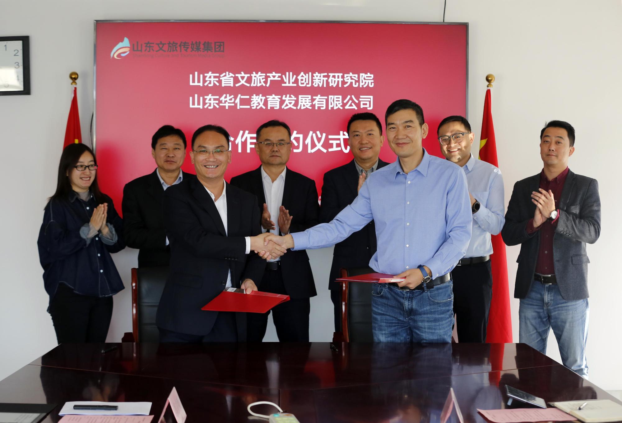 11月12日,山東省文旅產(chǎn)業(yè)創(chuàng)新研究院(簡(jiǎn)稱“研究院”)與山東華仁教育發(fā)展有限公司(簡(jiǎn)稱“華仁教育”)合作簽約儀式舉行。山東文旅投資集團(tuán)黨委書記、董事長(zhǎng)王化龍,山東文旅傳媒集團(tuán)黨委書記、董事長(zhǎng),山東省文旅產(chǎn)業(yè)創(chuàng)新研究院院長(zhǎng)龐道鋒出席儀式。