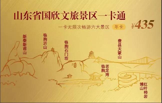 2021年7月,山東文旅景區(qū)集團(tuán)整合旗下費(fèi)縣天蒙山、臨朐沂山、石門坊、老龍灣、新泰新甫山、博山紅葉柿巖等六家優(yōu)質(zhì)景區(qū)資源,推出了“山東省國欣文旅景區(qū)”一卡通,原價435元,惠民價198元,游客一年內(nèi)可以無限次進(jìn)入六大景區(qū)。