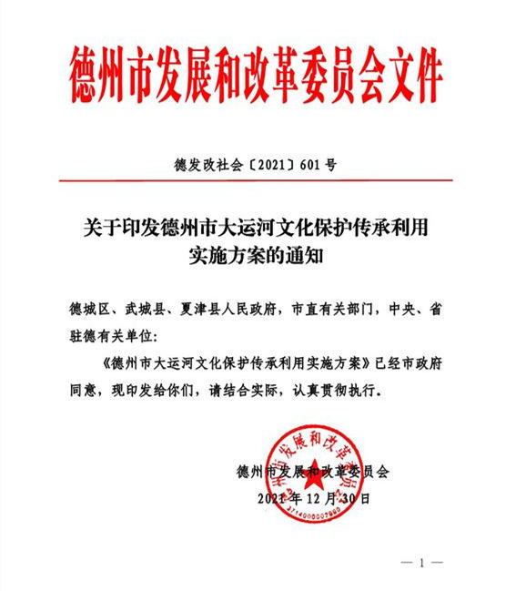 省旅游設計院編制的《德州市大運河文化保護傳承利用實施方案》發(fā)布實施