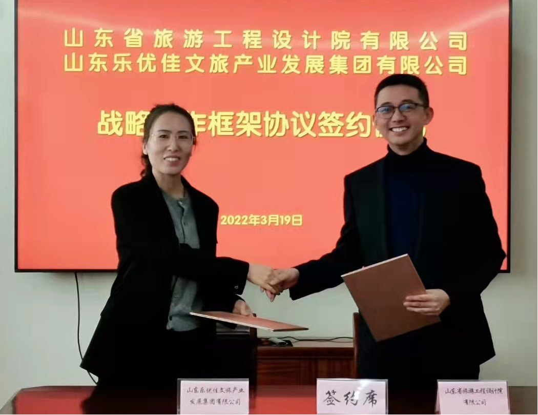 3月19日,山東省旅游工程設(shè)計(jì)院有限公司(簡(jiǎn)稱“省旅游設(shè)計(jì)院”)與山東樂優(yōu)佳文旅產(chǎn)業(yè)發(fā)展集團(tuán)有限公司(簡(jiǎn)稱“樂優(yōu)佳文旅集團(tuán)”)舉行戰(zhàn)略合作簽約儀式。省旅游設(shè)計(jì)院黨支部書記、執(zhí)行董事孫曉靜,樂優(yōu)佳文旅集團(tuán)董事長(zhǎng)崔鑫出席儀式。