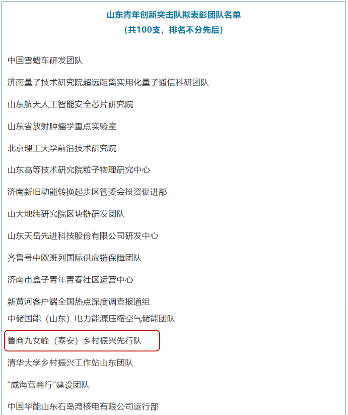 山鄉(xiāng)集團(tuán)九女峰(泰安)鄉(xiāng)村振興先行隊榮獲“山東青年創(chuàng)新突擊隊”稱號