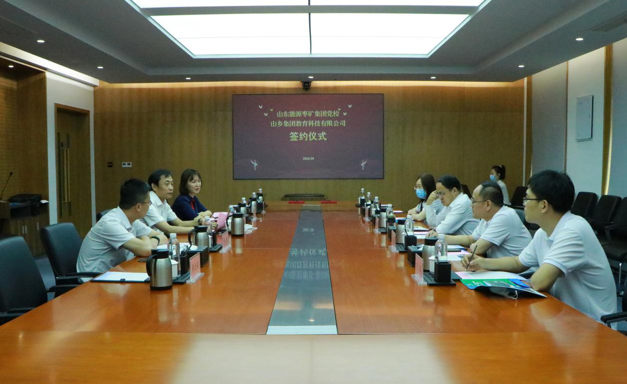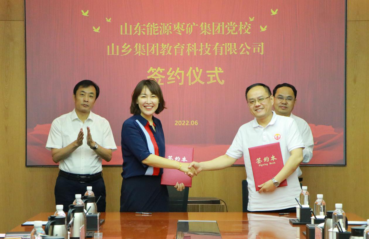 山東能源棗礦集團黨校副校長邵明濤,山鄉(xiāng)集團教育科技有限公司董事長、總經(jīng)理許欣代表雙方簽約。