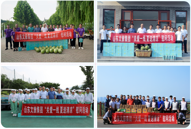 近日,山東文旅集團(tuán)開(kāi)展“關(guān)愛(ài)一線 夏送清涼”慰問(wèn)活動(dòng),將夏日涼爽送入基層一線員工身邊。8月3日至5日,山東文旅集團(tuán)黨委委員、副總經(jīng)理、工會(huì)主席孫超帶隊(duì)深入景區(qū)、項(xiàng)目、產(chǎn)業(yè)等基層一線走訪慰問(wèn),了解員工需求,將防暑物資送到項(xiàng)目一線,同時(shí)送去集團(tuán)黨委的關(guān)心和問(wèn)候,讓員工實(shí)實(shí)在在感受到組織的溫暖。一線員工紛紛表示今后要更加勤奮工作,認(rèn)真負(fù)責(zé),敢于擔(dān)當(dāng),為集團(tuán)發(fā)展貢獻(xiàn)文旅人力量,以?xún)?yōu)異成績(jī)迎接黨的二十大勝利召開(kāi)。