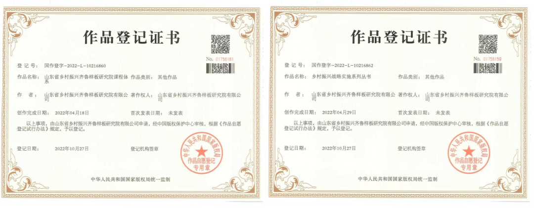 鄉(xiāng)村振興齊魯樣板研究院多項作品獲得國家版權(quán)局著作權(quán) 理論研究再獲新成果