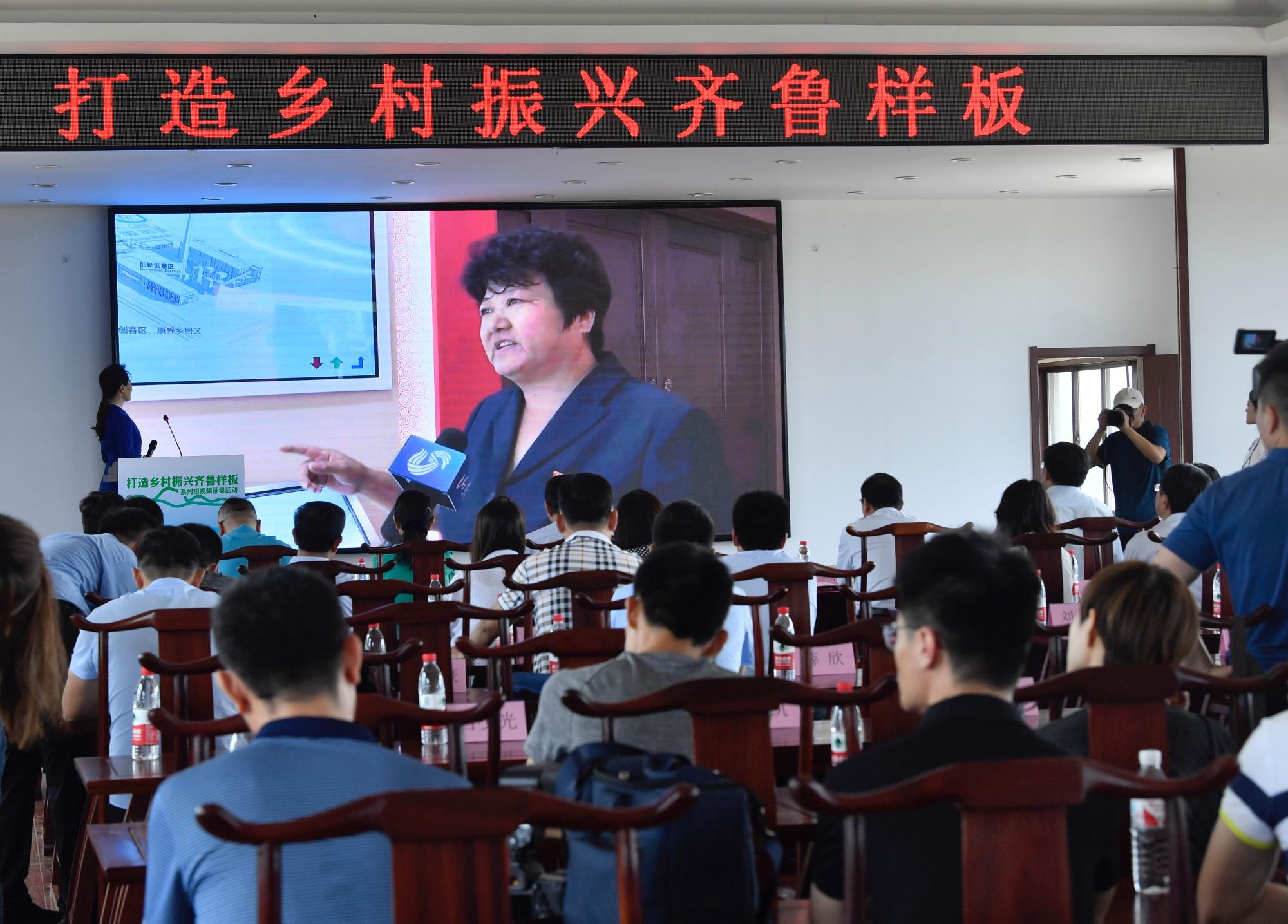 儀式現(xiàn)場(chǎng),通過(guò)視頻直播連線了濟(jì)南市章丘區(qū)三澗溪村黨支部書(shū)記高淑貞、臨沂市蘭陵縣代村黨委書(shū)記王傳喜,共同分享打造鄉(xiāng)村振興齊魯樣板的經(jīng)驗(yàn),充滿互聯(lián)網(wǎng)思維的快手大V“山東萊蕪養(yǎng)蜂人”還介紹了他的創(chuàng)富經(jīng)驗(yàn)。
