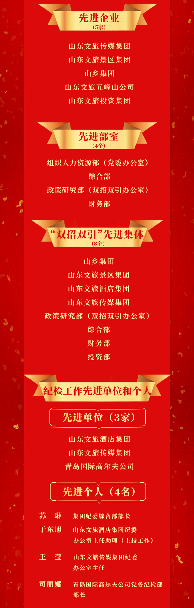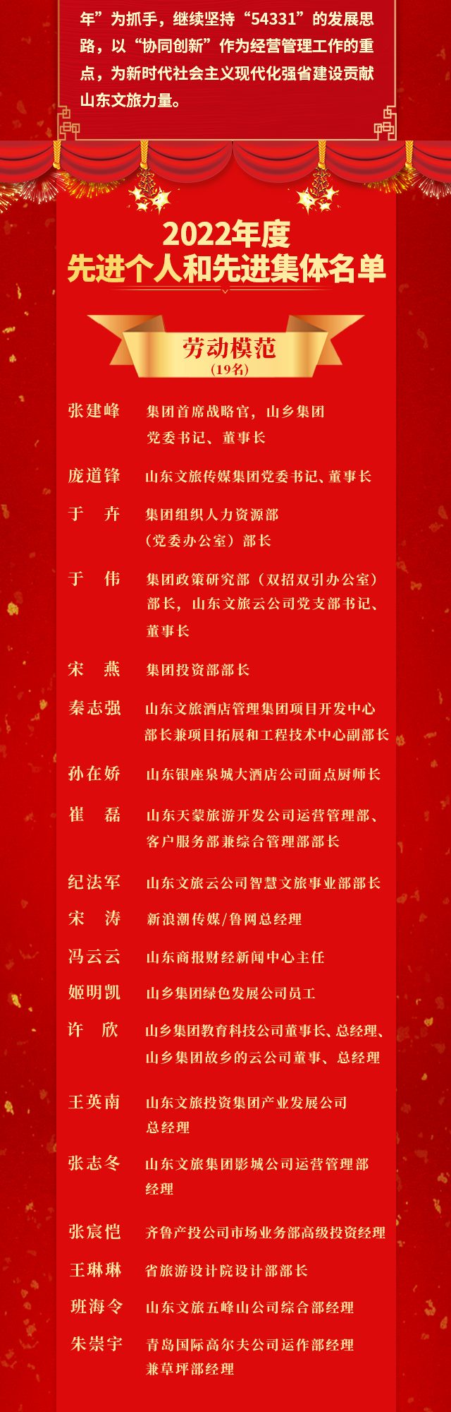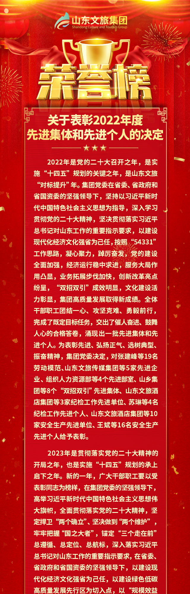 山東文旅集團(tuán)2022年度先進(jìn)集體和先進(jìn)個人榮譽(yù)榜揭曉