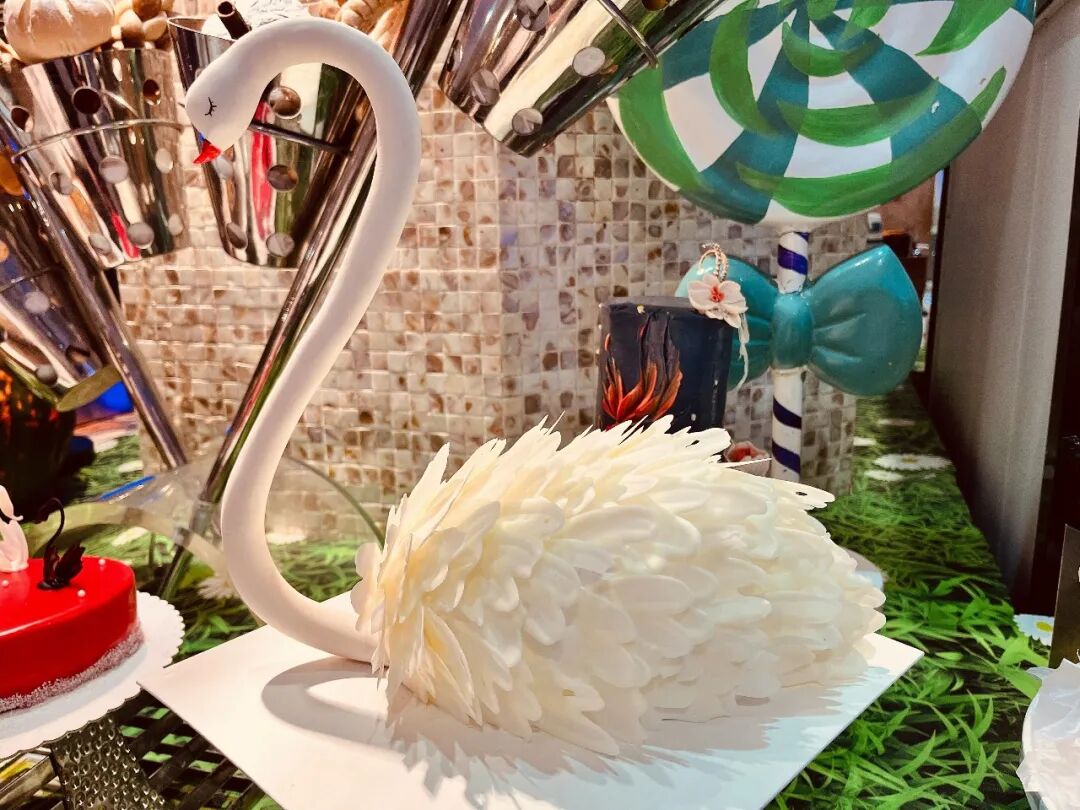 天鵝是高貴、優(yōu)雅的象征,手工制作的清脆白巧化作天鵝輕盈的羽毛,仿佛下一秒天鵝就要翩翩起舞,仙氣十足。在方寸之間點(diǎn)綴出藝術(shù)的浪漫,為賓客帶來視覺的享受。巧克力的甜和奶油的細(xì)膩順滑,口感醇厚不膩,品嘗一口,滿是幸福的滋味。