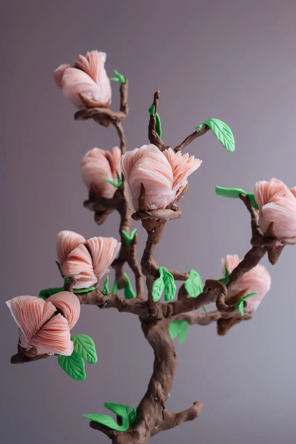 玉蘭花開,春意盎然。一朵朵屹立在枝頭恬靜綻放的玉蘭酥,仿佛散發(fā)著淡淡的花香,昂揚(yáng)向上的姿態(tài)讓人感受到初春的蓬勃朝氣。一抹淡淡的水紅色,把春天定格在眼里、在口中、在心田,香甜酥脆、層次分明,帶來視覺和味覺的雙重享受。