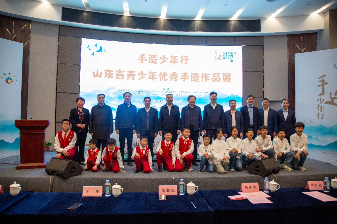 最后,陳光華宣布“手造少年行”——山東省青少年優(yōu)秀手造作品展開幕,并與少先隊(duì)員們一起啟動“手造少年行”卷軸。開幕式結(jié)束后,與會領(lǐng)導(dǎo)在少先隊(duì)員的帶領(lǐng)下共同參觀山東省青少年優(yōu)秀手造作品展。