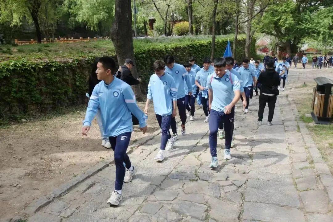 出征儀式后,濟南興洲足球俱樂部在靈巖寺景區(qū)內(nèi)進行了登山活動。