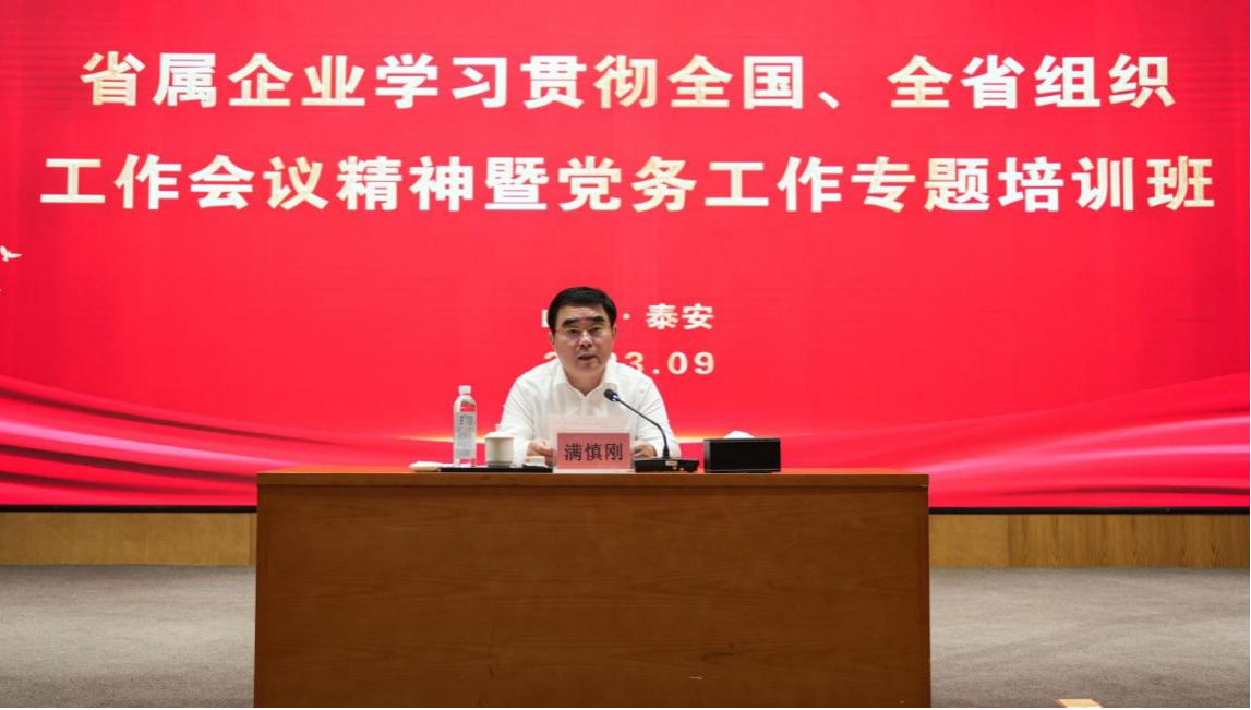 9月19日上午,省屬企業(yè)學習貫徹全國、全省組織工作會議精神暨黨務(wù)工作專題培訓班在泰山九女峰鄉(xiāng)村振興示范區(qū)山東省鄉(xiāng)村振興齊魯樣板研究院(省國資委黨校泰安教學基地)正式開班。省國資委黨委書記、主任滿慎剛出席開班式并講話。省屬企業(yè)黨委專職副書記,黨委組織(黨群)部門負責人,業(yè)務(wù)骨干及部分基層企業(yè)黨組織書記,有關(guān)中央駐魯企業(yè)黨務(wù)工作者共計200余人參加培訓。