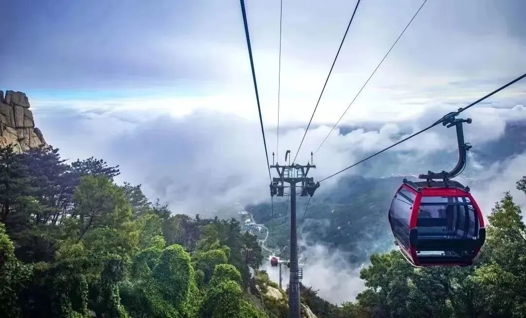 “齊魯?shù)亍币埠苡幸馑?。一塊大石,中間裂開,左邊是齊,后邊是魯。這是什么出處?本地朋友介紹說山下大田莊鄉(xiāng)有個齊魯?shù)卮澹鍠|有條南北向的丘陵,俗稱“土龍脊”,春秋戰(zhàn)國時期是齊、魯兩國的軍事分界線,南為魯,北為齊。據(jù)民間傳說,秦始皇統(tǒng)一六國后,有士兵留戀此地,便在土龍脊兩側定居下來,繁衍生息,形成了齊魯?shù)卮濉?br style="outline: 0px;" />這里有從奧地利多貝瑪亞引進的世界最先進的索道——坐纜車固然可以用凌空蹈虛的方式來賞景,這里的纜車卻還是與別處不同:有水晶纜車。紅色外框的那種,就是水晶纜車。說是水晶,其實是玻璃。沒錯,就是為了能讓你的視野360度無死角,所以你的腳底板下也是玻璃。