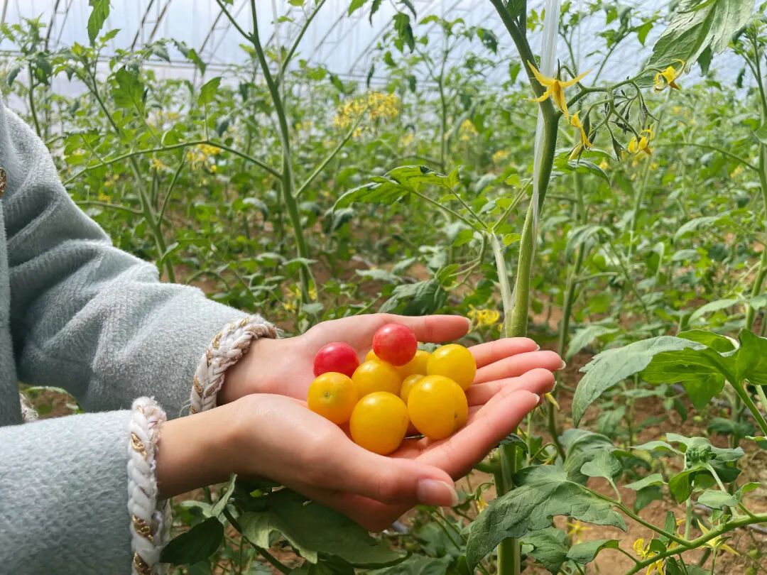 山鄉(xiāng)綠色果蔬種植基地內(nèi)的小番茄
