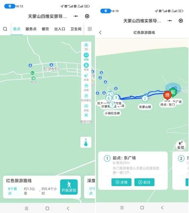 通過北斗系統(tǒng)的智能導(dǎo)游功能,游客可以深入了解天蒙景區(qū)的歷史文化背景和特色文旅景觀知識。這種交互式的游覽方式滿足了不同類型游客導(dǎo)覽內(nèi)容的需求,使游客不再是單純地欣賞風(fēng)景,更是沉浸在深厚的文化氛圍中,體驗旅途中的心靈之旅。