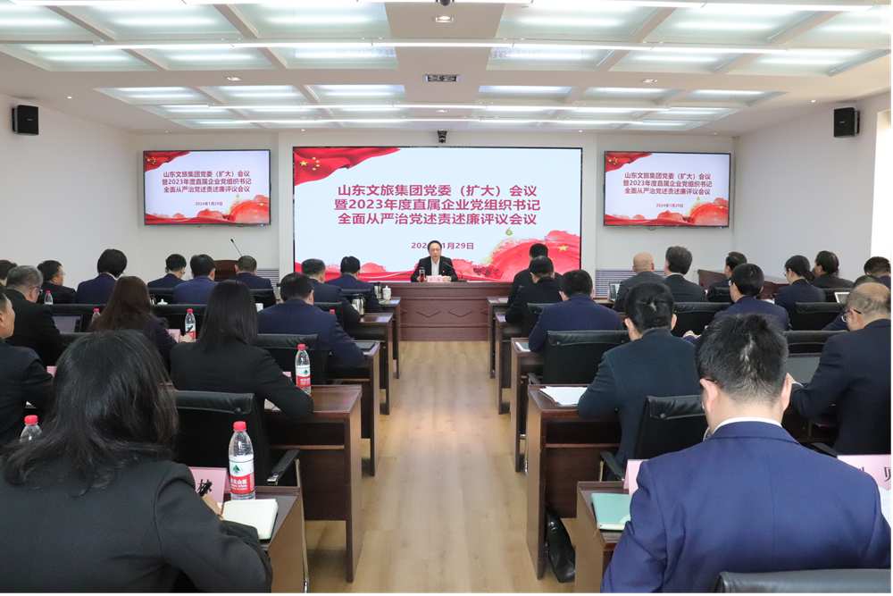 1月29日,山東文旅集團召開黨委(擴大)會議暨2023年度直屬企業(yè)黨組織書記全面從嚴治黨述責述廉和抓基層黨建工作述職評議會議,集團黨委書記、董事長丁藝主持會議并講話,省國資委組織與統(tǒng)戰(zhàn)工作處顏井春同志到會指導。