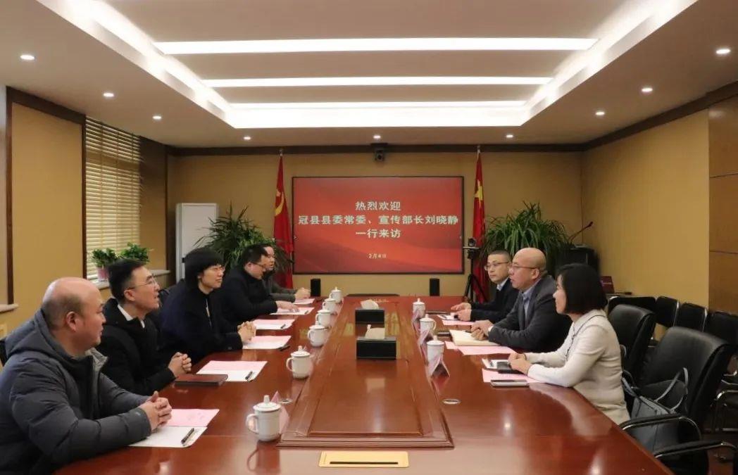 2月4日,冠縣縣委常委、宣傳部部長劉曉靜一行到訪山東文旅集團(tuán),集團(tuán)黨委委員、副總經(jīng)理孫超會(huì)見。
