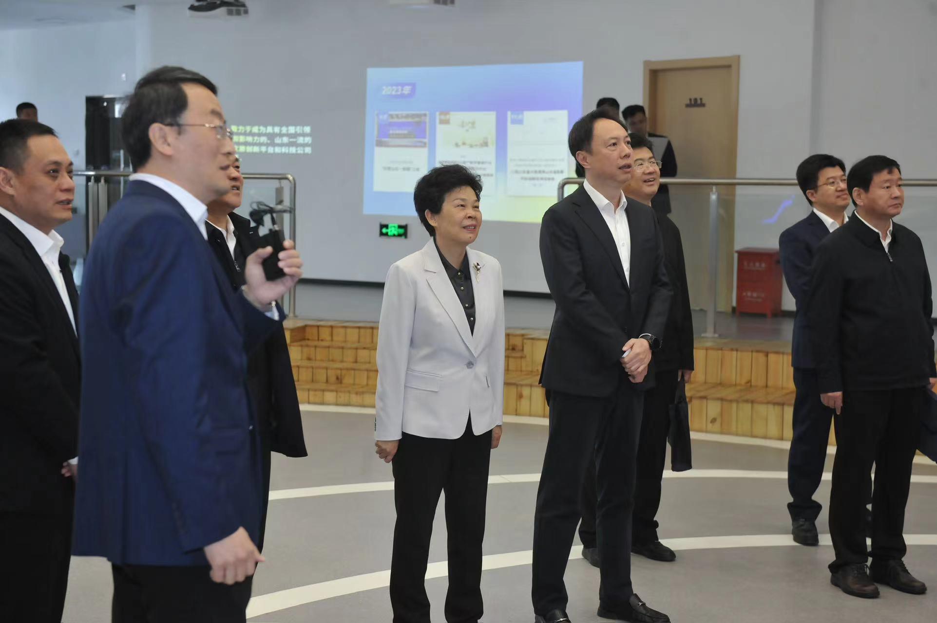 在山東文旅集團,葛慧君實(shí)地調研文旅云公司,觀(guān)看相關(guān)宣傳片,通過(guò)文旅融合大數據中心,察看省內主要景區實(shí)時(shí)人流量,聽(tīng)取集團專(zhuān)注文旅發(fā)展主業(yè)、建設文旅融合項目等情況介紹。