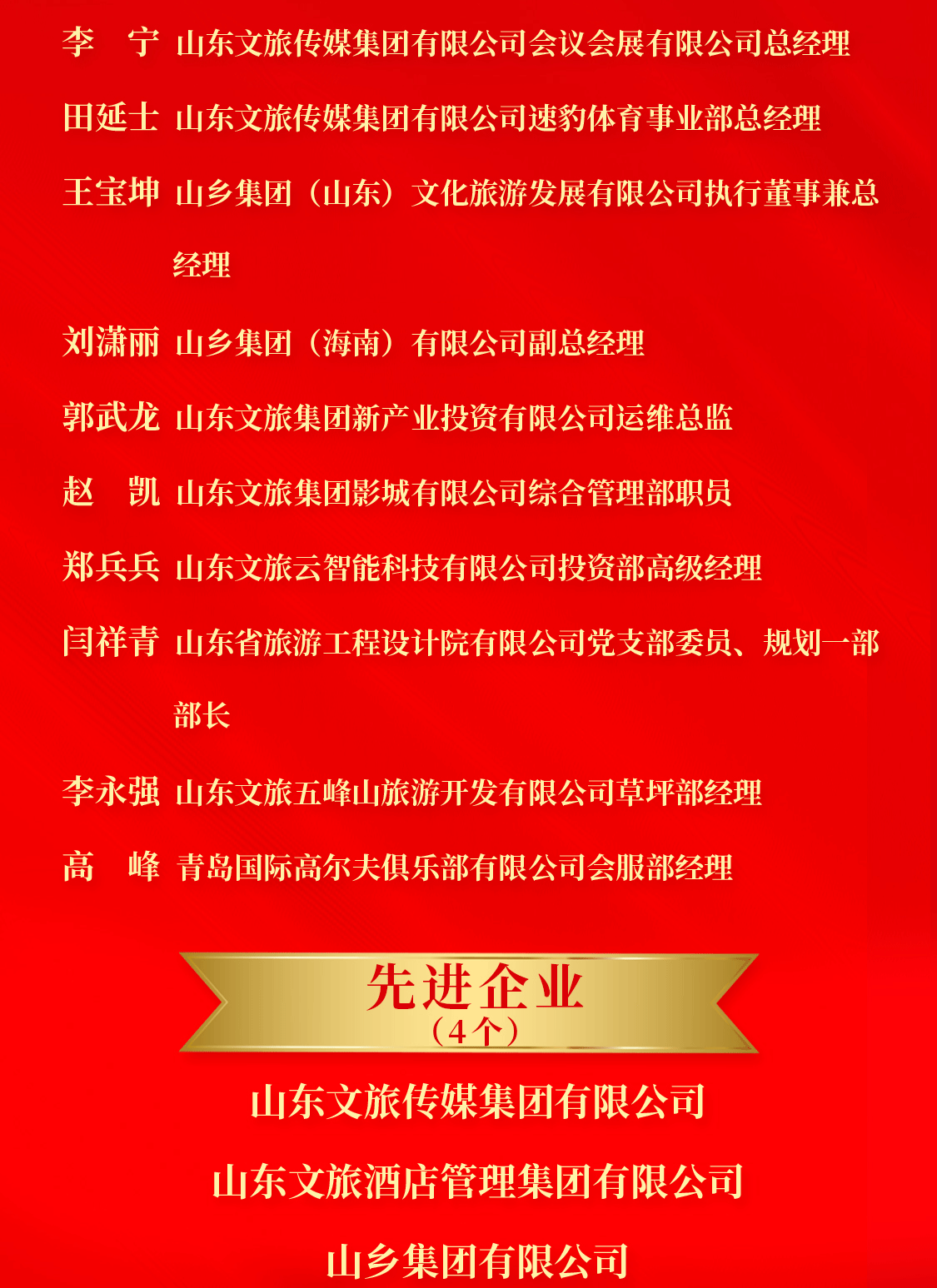 山東文旅集團(tuán)2023年度先進(jìn)集體和先進(jìn)個(gè)人榮譽(yù)榜揭曉