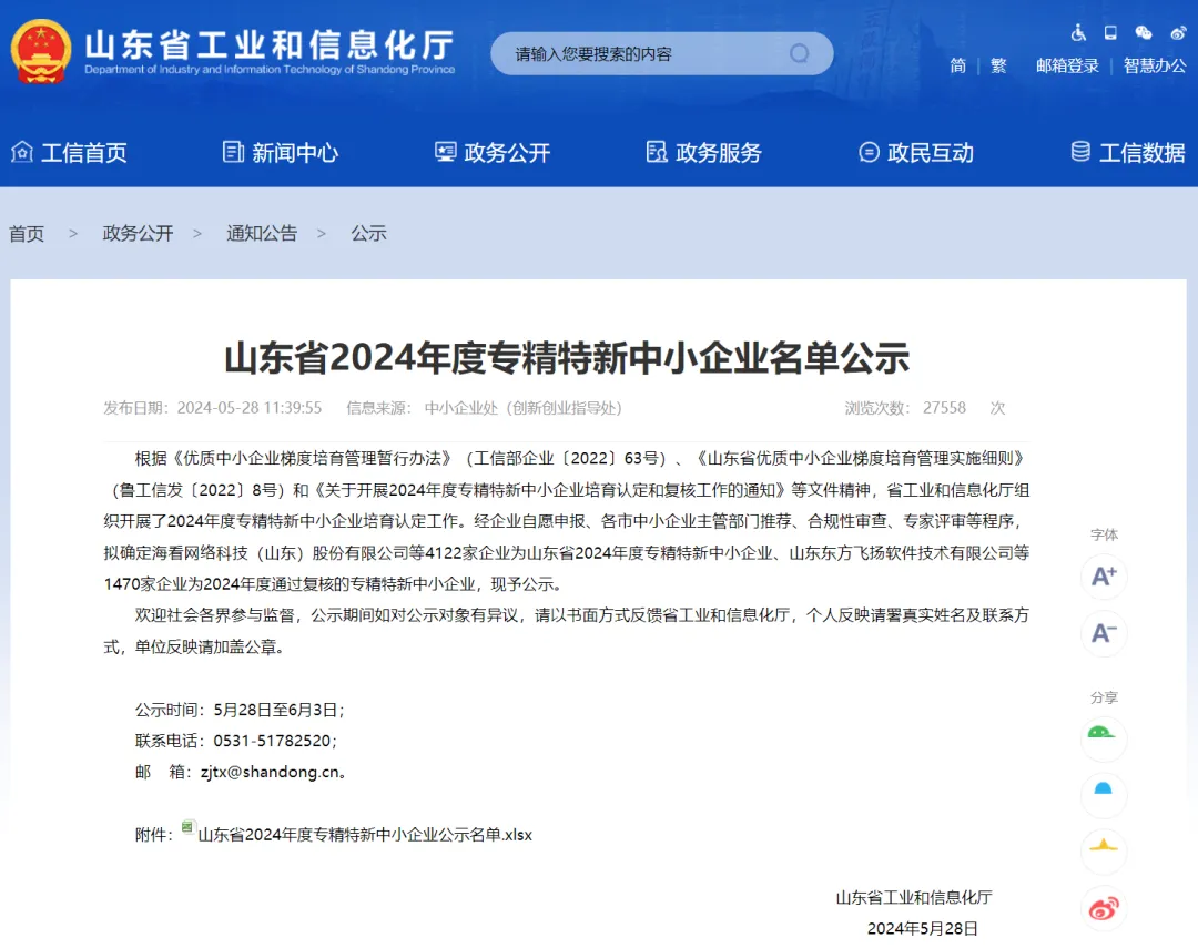 近日,山東省工業(yè)和信息化廳發(fā)布了《山東省2024年度專精特新中小企業(yè)名單公示》,山東文旅集團(tuán)科技發(fā)展有限公司權(quán)屬單位山東澎湃信息科技有限公司(簡(jiǎn)稱“澎湃科技”)成功入選山東省2024年度專精特新中小企業(yè),這是澎湃科技繼通過高新技術(shù)企業(yè)認(rèn)定之后又一殊榮。