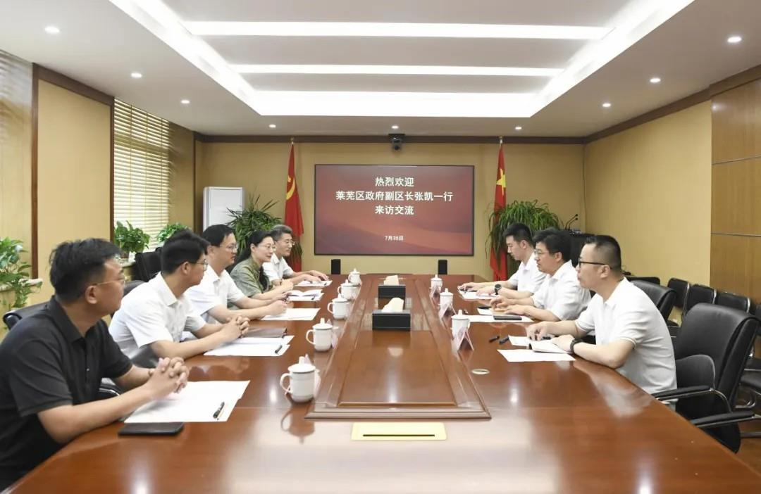 7月25日上午,萊蕪區(qū)副區(qū)長(zhǎng)張凱一行到山東文旅集團(tuán)考察調(diào)研,集團(tuán)黨委副書記、董事、總經(jīng)理門家春會(huì)見。