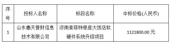 濟南索菲特銀座大飯店軟硬件系統(tǒng)升級項目中標(biāo)結(jié)果公示