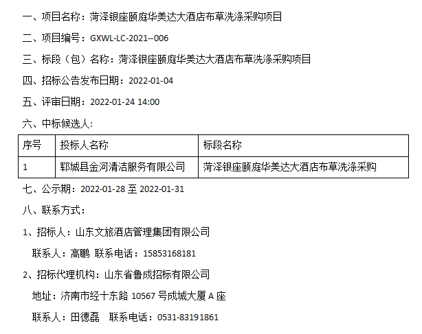 菏澤銀座頤庭華美達大酒店布草洗滌采購項目中標候選人公示