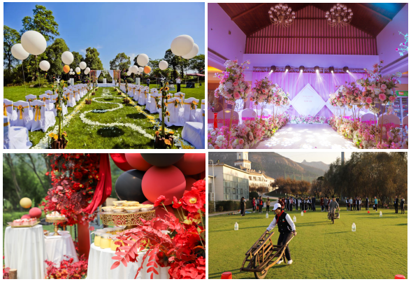 崮云湖畔開(kāi)辟草地活動(dòng)中心,占地8000平米,自然景觀秀麗,獨(dú)有的高爾夫?qū)I(yè)場(chǎng)地草坪,是舉辦浪漫婚禮、生日宴、帳篷節(jié)、親子活動(dòng)、發(fā)布會(huì)、團(tuán)建活動(dòng)等各類(lèi)戶外活動(dòng)的絕佳場(chǎng)地。場(chǎng)地承接專(zhuān)屬私人定制婚禮,提供婚紗攝影場(chǎng)地租賃,可滿足室內(nèi)外所有婚禮場(chǎng)景的幻想,專(zhuān)業(yè)的顧問(wèn)團(tuán)隊(duì)為新人量身設(shè)計(jì),打造出高爾夫特色與自然融合一體的時(shí)尚婚禮現(xiàn)場(chǎng),讓新人及親友暫時(shí)告別城市喧囂,享受自然賦予的陽(yáng)光和美好。